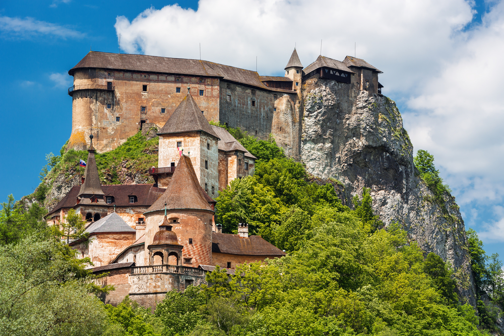 Zachovaný hrad na vrchole vápencového bradla, čnejúceho nad riekou Orava v Oravskej vrchovine - dominanta obce Oravský Podzámok.